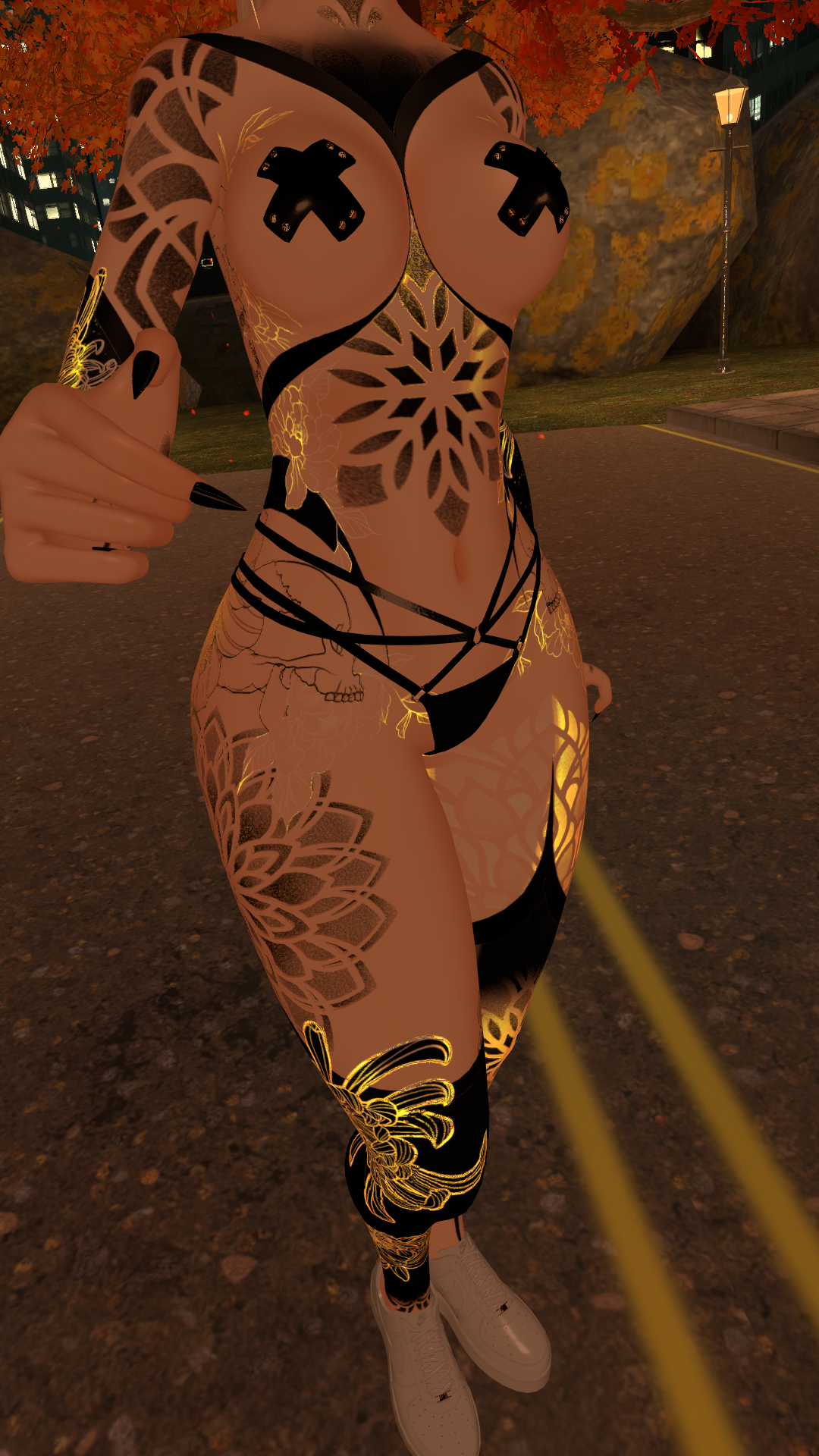 Vina -> 1 material, 1 Texture with tattoos, 1 png (Only Tattoos), 6 masks, 1 Normal map