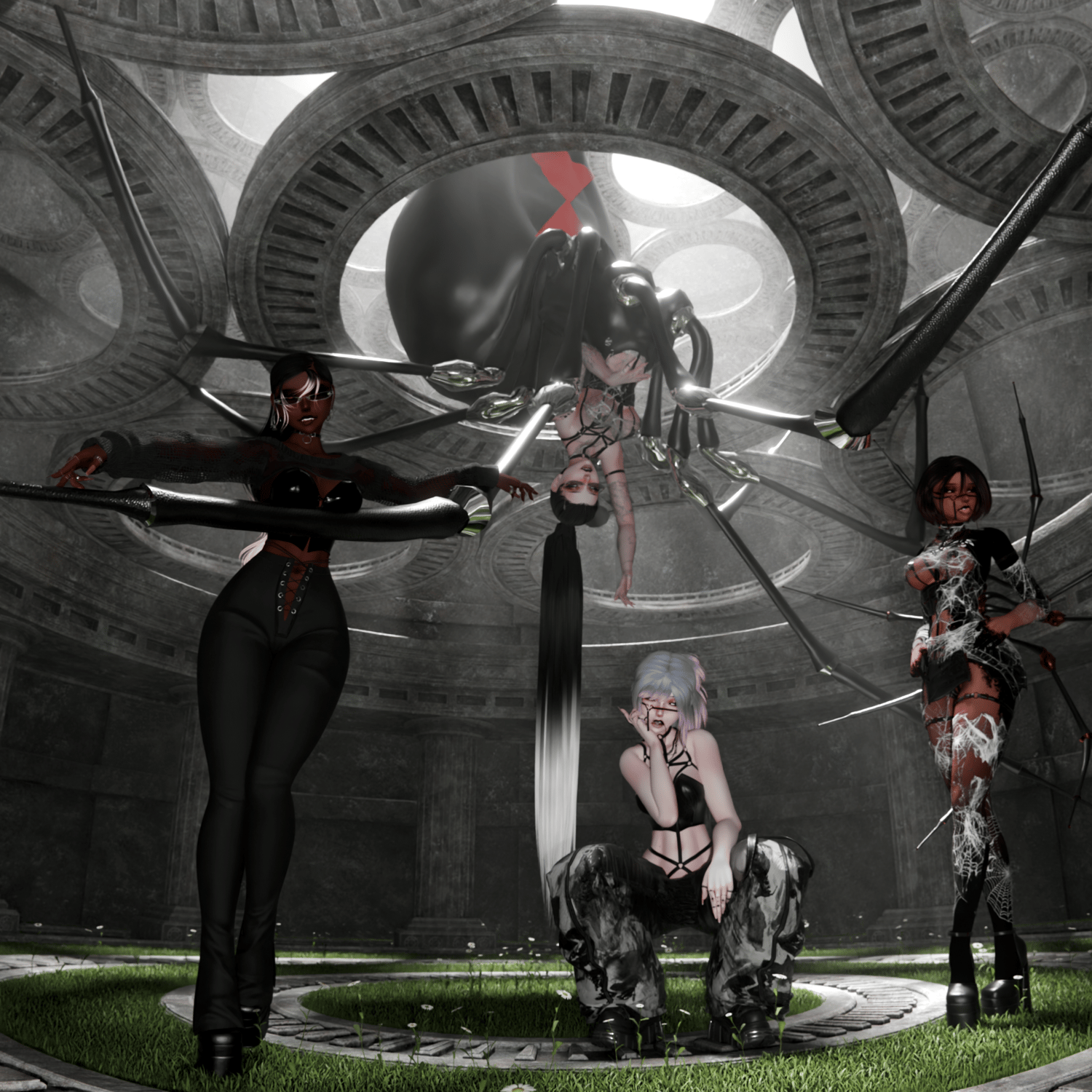 VRBase e-Girl | Amour Head | Spider Hoops | Kitty Gang | Moonlit set | Cyber Wraith Outfit | Lover's Flame Outfit | Bangs V1 | Dove | Kira's Messy Bun | NesPersHair | Tana | Oni | Devotion Set | Body Piercings | Spider Glasses | Bitten Chain | Zetra Rings | Maeve Set | Cvnt Boots | C.S. Heels | Winged Hightops | Ego Stompers | Tank Boots | Spider Body, Butt and Back Legs | Spiderweb Set | Fog by Alexis70 | Traumabond | Tattoos | Thighs