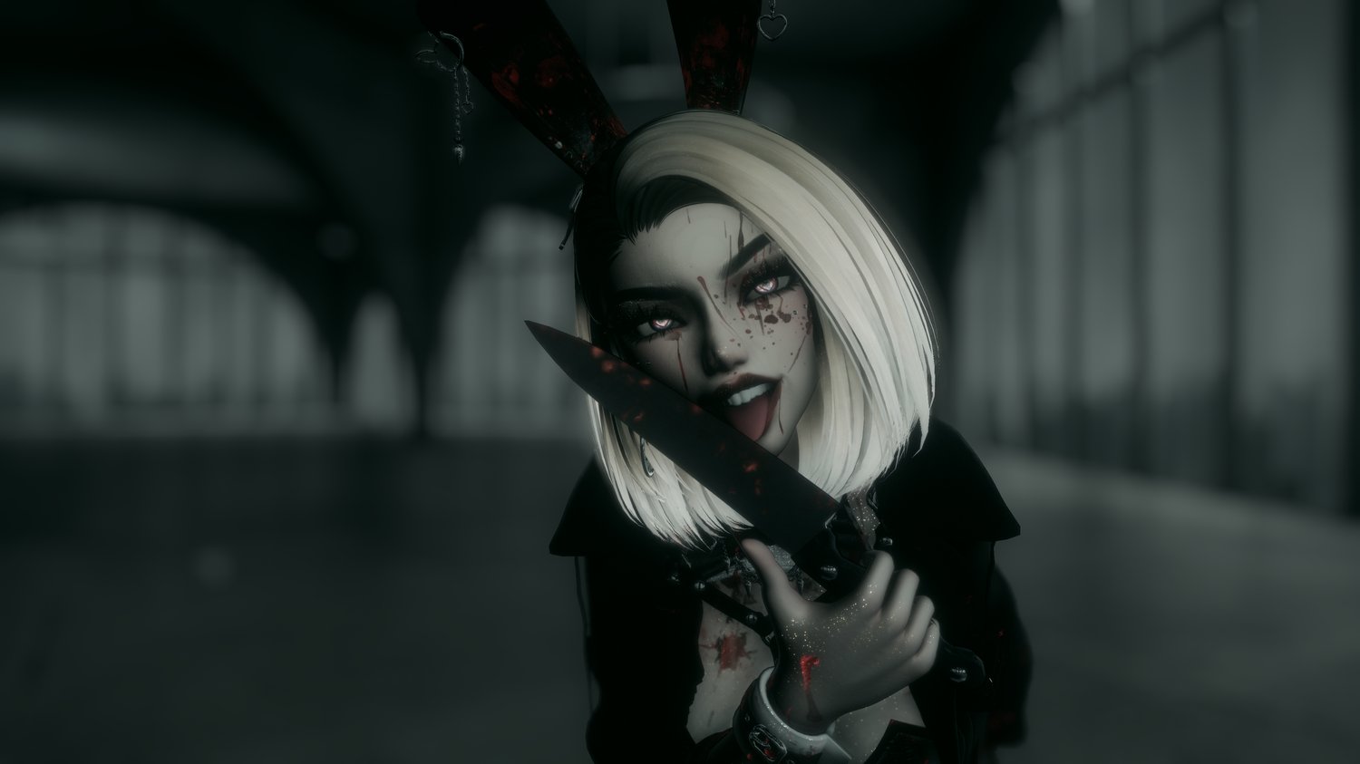 Head | Body | Hair | Bunnyset | Bikini | Knife | Hoops | Necklace & Spike Earrings | Bunny Animal Tail & Ears | Glasses | Harness | Jacket | Boots | Heels